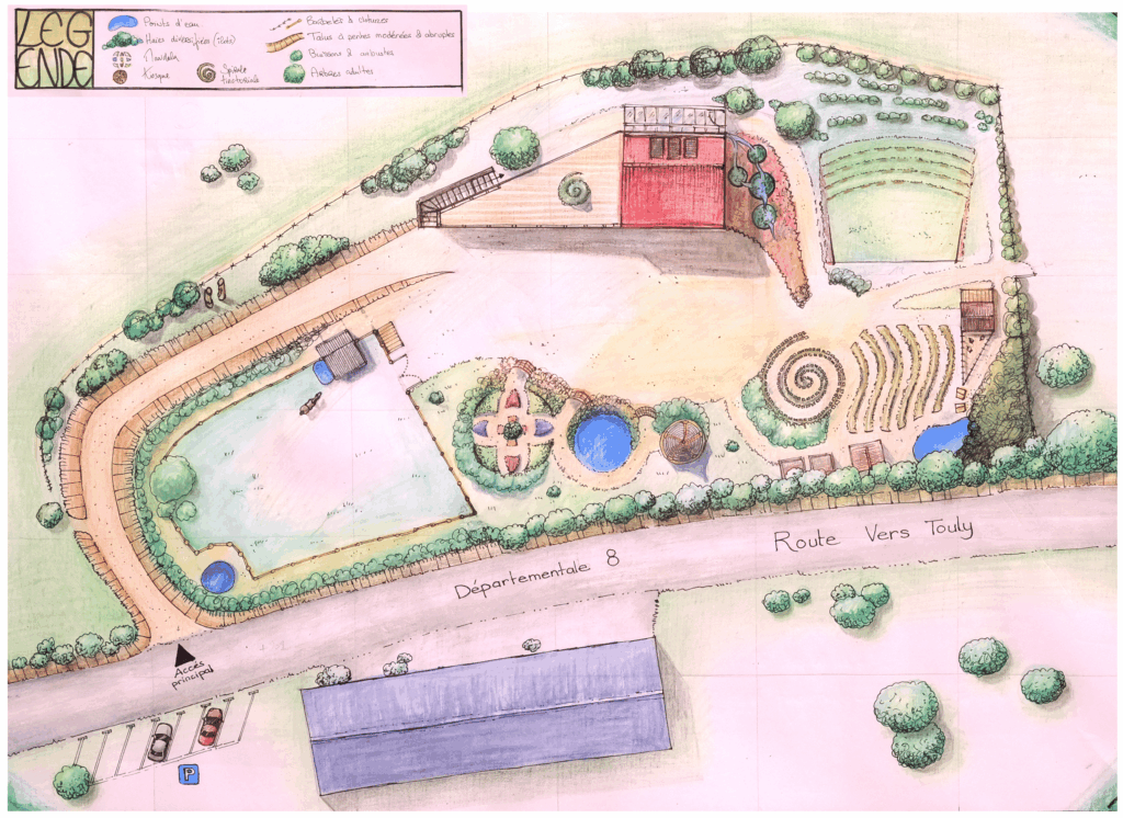 Le projet s’appuie sur les principes de la permaculture, appliqués aussi bien :